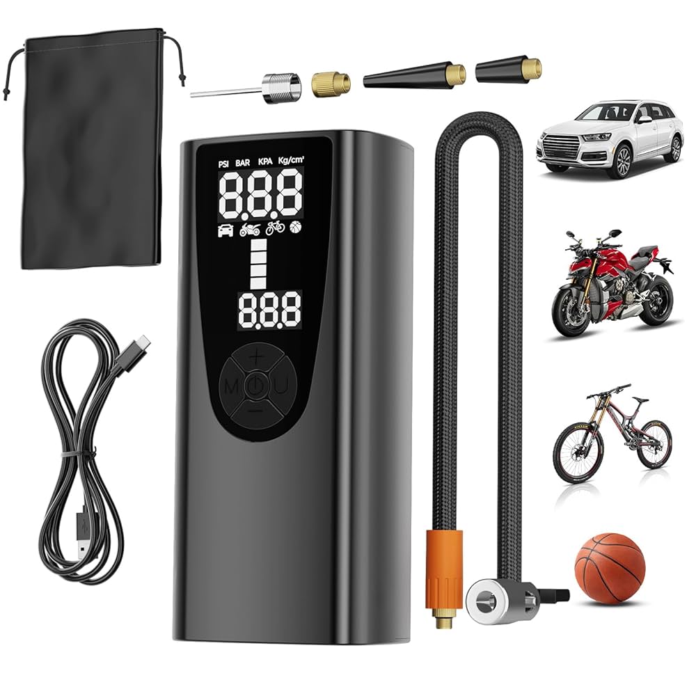 Cette pompe électronique est un véritable couteau suisse du gonflage ! Grâce à ses multiples embouts et adaptateurs, elle est capable de gonfler une grande variété d’objets : des pneus de voiture, moto ou vélo, mais aussi des équipements de sport comme des ballons, des matelas gonflables, des jouets ou même des petites piscines. Vous n’aurez plus besoin de plusieurs appareils différents pour chaque tâche. Son design innovant et ses embouts facilement interchangeables vous permettent de passer d’un objet à l’autre en quelques secondes. C'est l'outil idéal pour les familles, les sportifs et les voyageurs qui veulent un gonflage rapide et polyvalent.